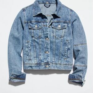 "A classic wardrobe staple, this simple denim jacket is the perfect layer for the season". Still on the Free People Website.
