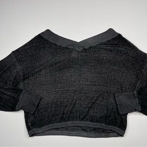 We the Free South Side Thermal Sweatshirt Waffle Black Festival Boho Burnout