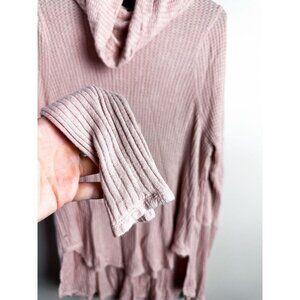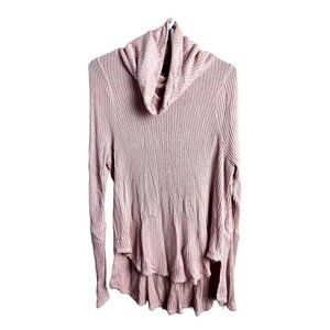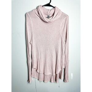 We the Free Waffle Knit Lightweight Turtleneck Sweater Womens Pink Small