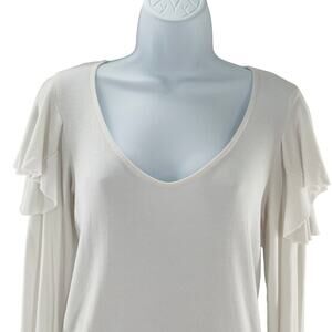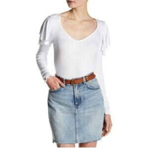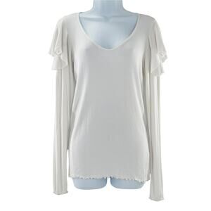 We the Free White On Rewind Long Sleeve Lettuce Hem Blouse Top M