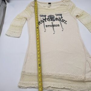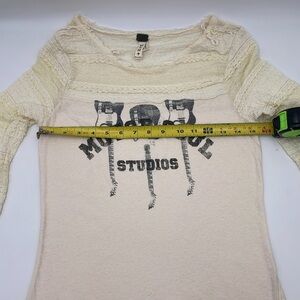We the Free Women Cream Cotton Motor Soul Studio 3/4 Arm Top FREE SHIPPING