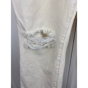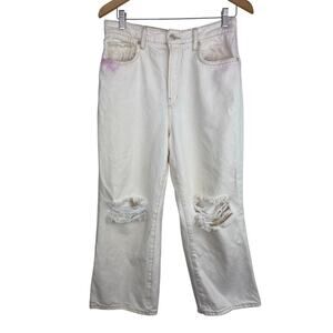 We the Free Women's Size 31 Cream Distressed Button Fly Wide Leg Crop Jeans. Pre-owned in good condition with some pink dye stains.