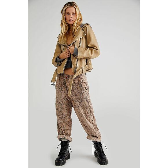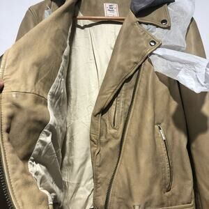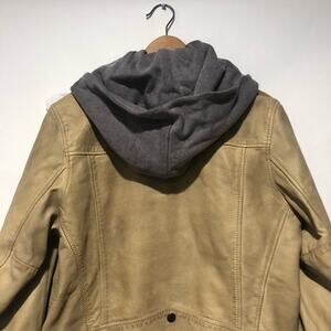 We the Free Womens Leather Moto Hoodie Jacket Brown Size M