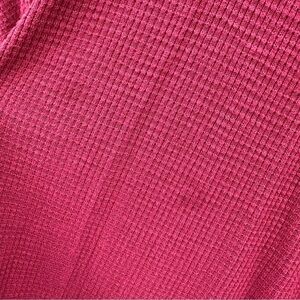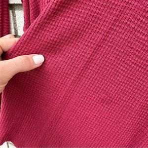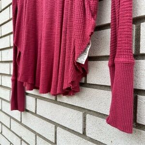 Oversized thermal top featuring a sheer lace panel along the neckline. Boat neck. Dolman style sleeves. Ribbed trim. Rounded hem with unfinished edges. 100% Rayon. Lace Trim: 64% Cotton, 36% Nylon. Rib Trim: 96% Rayon, 4% Spandex. Size S. Good used condition, two spots on front, see last few photos.