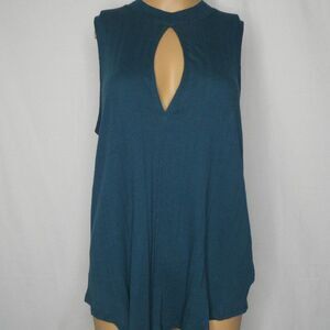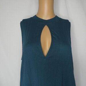Great dark teal sleeveless top with a keyhole at the bust to give a bit of cleavage to an otherwise simple tank. In excellent condition. OB519385