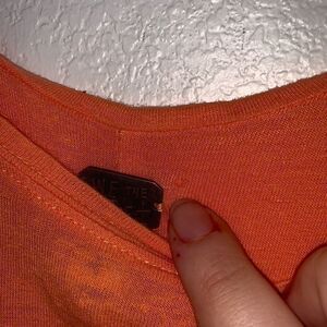 Lovely creamsicle/ sherbet Orange hi low tank. Layered and billowy yet fitted. Small size has small hole on the inside of the neck(on inside layer, outside layer is fine). Overall excellent condition.