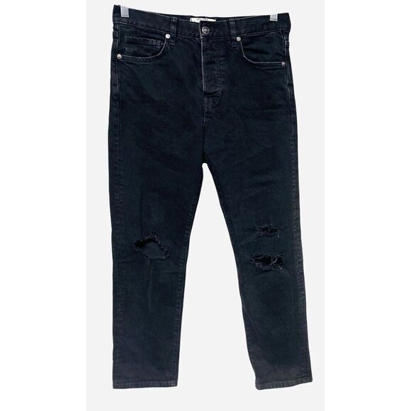 We the Free People Jeans Sz 27 Faded Black Bren Boyfriend Distressed Button Fly