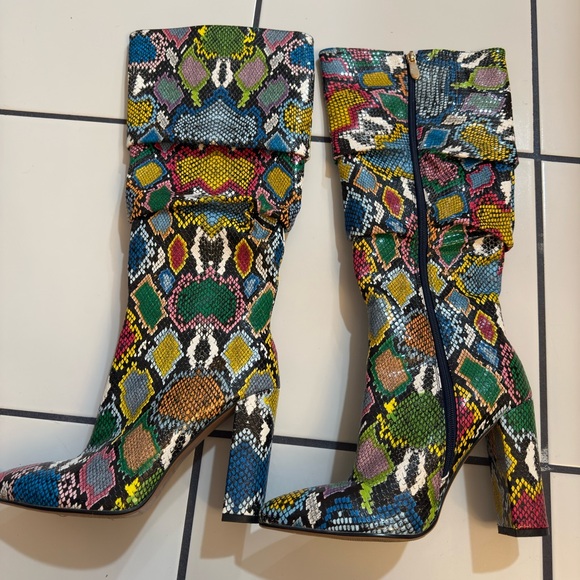 We the Kiss Multicolor Snakeskin Bright Heeled Boots Sz 8