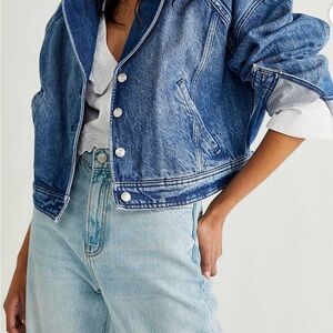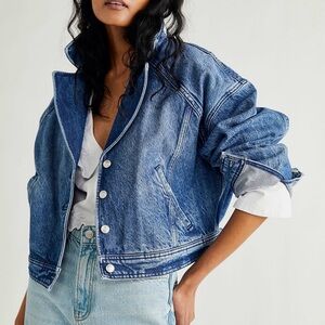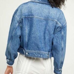 We the free Free People Now or Never Dark Wash Cropped Denim Jacket