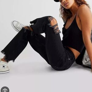 We the free Maggie Button fly Mid rise black distressed Boho jeans Size 31
