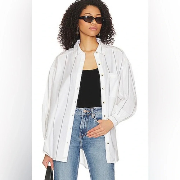 The perfect blend of cool and classic, this contemporary shirt is featured in a staple striped design and slouchy, relaxed fit with dropped shoulders and slightly exaggerated sleeves for added shape.