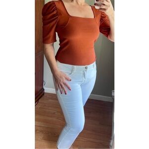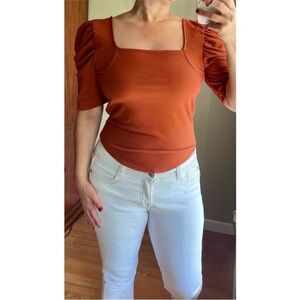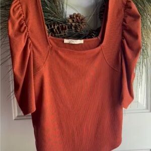 We the free night lily puff shoulder ribbed top shirt blouse in rust color size XLarge