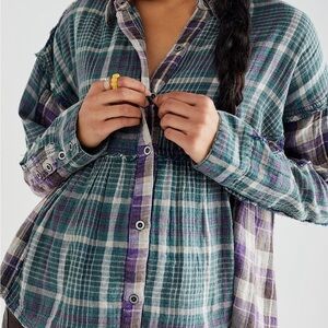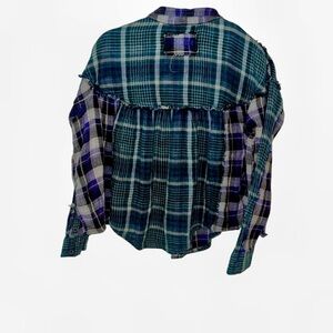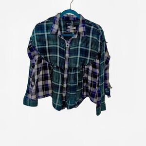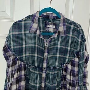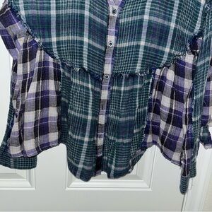We the free people blue plaid button short top small S 100% cotton