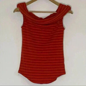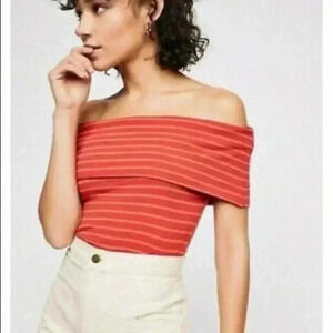 We the free people red orange Melbourne Striped Off-The-Shoulder Rib Knit Top L