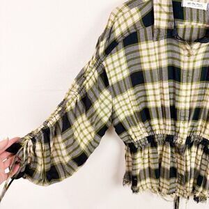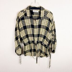 We the Free Plaid Wool Blend Button Up Blouse Top Large