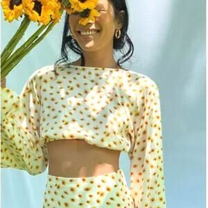 We wore what Onia Billow sleeve ditsy floral crop top sunflower S boho festival