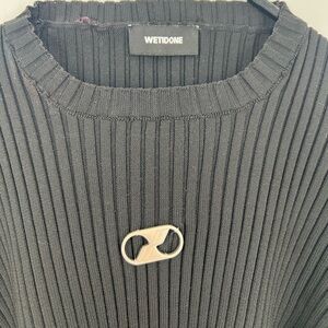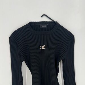 We11done Fitted Ribbed Knit Centre Logo Hardware Crewneck Sweater In Black