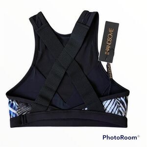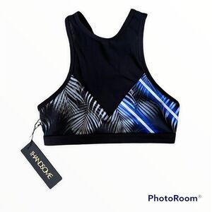 We Are Handsome Womens Black Active High Neck Eclipse Print Sports Bra Size XS