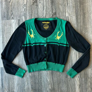 WeLoveFine Sweater Black and Green Marvel Loki Crop Sweater Cardigan Size Medium