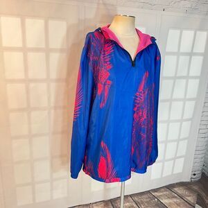 WeSC Blue Pink Hyper Bliss Hooded Windbreaker Jacket Size Mens Large Womens XL