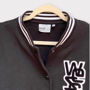 WeSC "We are the Superlative Conspiracy" Letterman Varsity Jacket Navy White Snap Size M