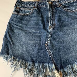 We The Free Frayed Hem Medium Wash Denim Mini Skirt Size 28