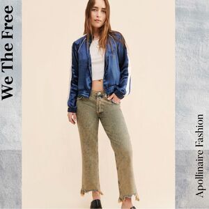 We The Free Maggie Midrise Cropped Distressed Jeans in Tan Navy Size 27 NWT