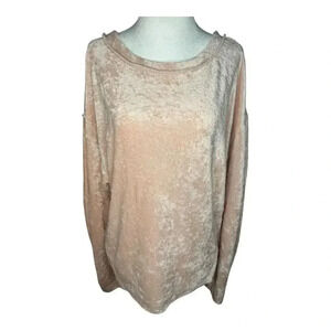 Keywords: We The Free, pink sweater, velvet pullover, women's medium, fall fashion, casual wear, crew neck, long sleeve, cozy sweater, pink velvet, women's clothing, pre-owned sweater, casual sweater