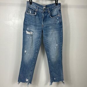 We The Free Free People Mid Rise Slim Leg Distressed Jeans Size 27