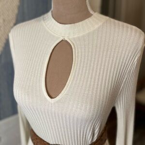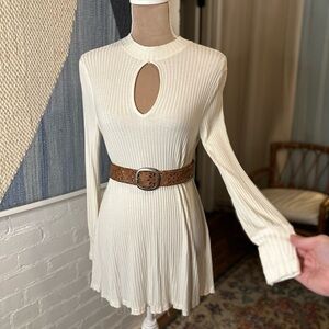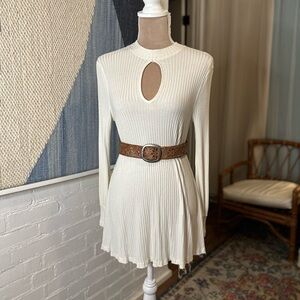 WeTheFree Cream Ribbed Long Sleeve Dress