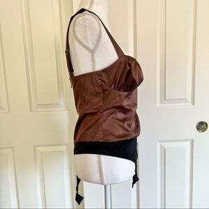 We Wore What Ruched Cup Shiny Stretch Satin Charmeuse Bodysuit Brown US 8