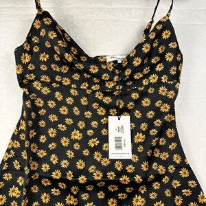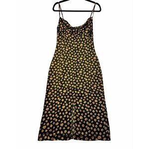 WeWoreWhat Black Babydoll Midi Slip Dress Sz 4 Daisy Print Fairy Grunge NWT