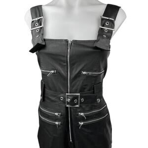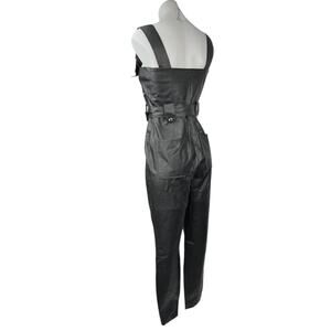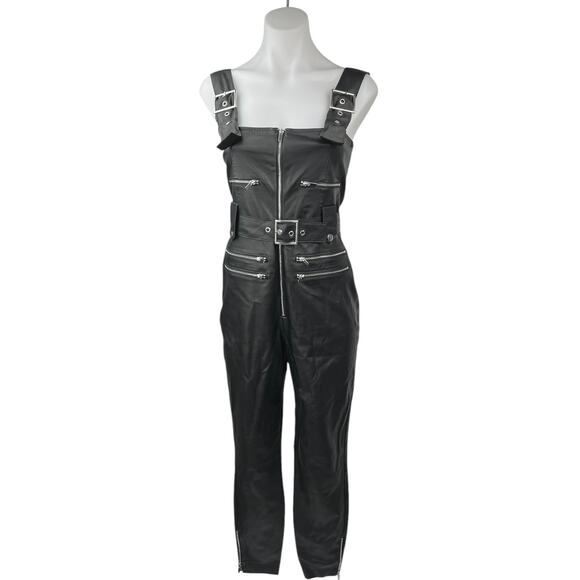 WeWoreWhat Black Faux Vegan Leather Zip Up Belted Moto Jumpsuit Overalls Size S