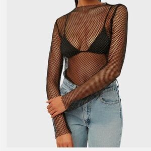 WeWoreWhat Black Mesh Mock Neck