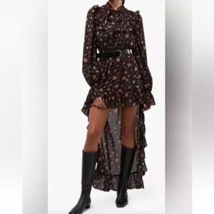 WeWoreWhat Black Polka Dot Floral High-Low Dress Size S