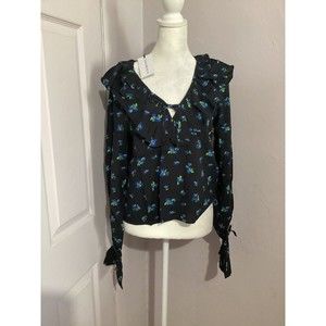 WeWoreWhat Black Ruffle Floral Long Sleeve Viscose Blouse Size S
