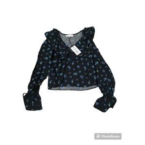 WwWoreWhat Black Ruffle Floral Long Sleeve Viscose Blouse Size XS Blue and black Pullover No flaws Lightweight Pit to pit 16 Length 19 MSRP $49