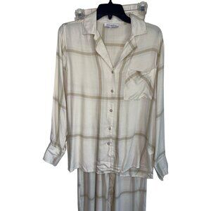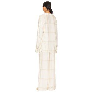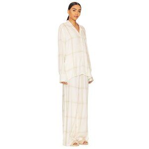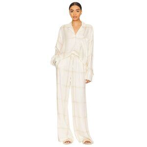 WeWoreWhat Brushed Flannel Button Up & Drawstring Pull On Pant Set in Ecru XSmal