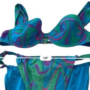 WeWoreWhat CLAUDIA Underwire Blue Purple Tanga Bikini Size LARGE