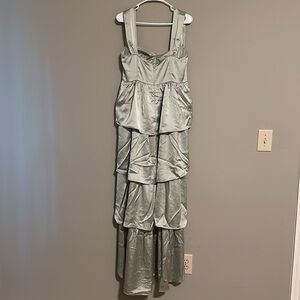 WeWoreWhat Corset High Low Maxi dress in Fog Green 10