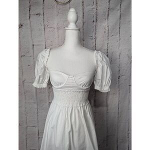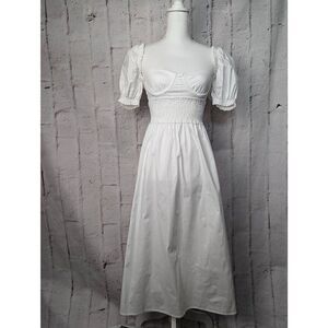 WeWoreWhat Corset Puff Sleeve Optic White Midi Dress size 00 XXS NWT