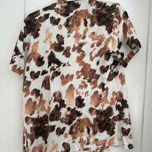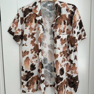 Never worn! Amazing cowhide button down shirt – super soft with a beautiful print. Definitely unisex