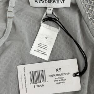 WeWoreWhat Crystal Cowl Neck Top XS Silver Mesh Sleeveless Party Rhinestones