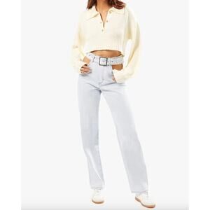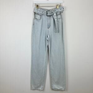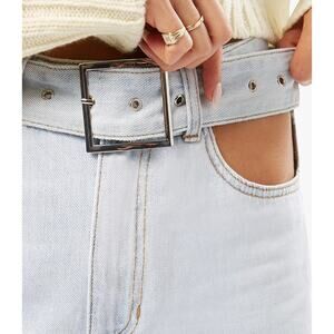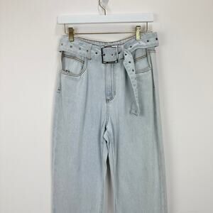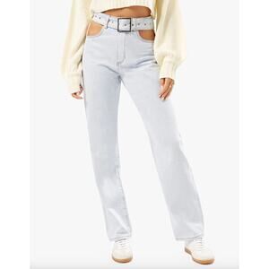WeWoreWhat Cut Out Straight Leg Indigo Denim Jean High Waist Belted Grunge US 26