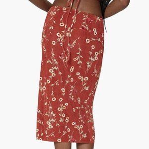 WeWoreWhat Danielle Bernstein Sz XL Red Floral Stretch Midi Wrap Skirt Side Slit
