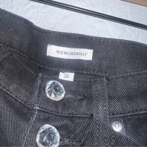 WeWoreWhat Danielle Jeans Crystal Button Up Straight Leg Black