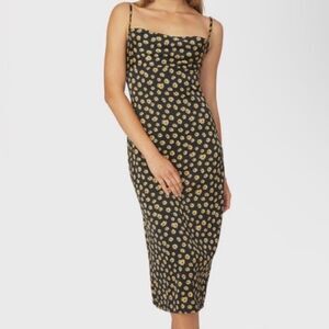 WeWoreWhat Ditsy Daisy Cowl Midi Dress Black Multi Floral Size 00