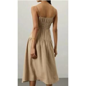 WeWoreWhat Dress Womens Large Tan Scrunchie Linen Smocked Bodice Midi Sundress