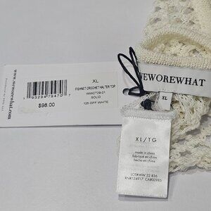 Crocheted in a fishnet pattern, this Halter Top is designed in a cropped silhouette with slim ties along the neckline and detailing the open back.