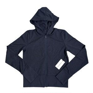Brand new with tags (NWT) WeWoreWhat fitted zip-up hoodie in a versatile heather navy color. Features a flattering, form-fitting silhouette with front zip closure, long sleeves, and a soft, stretchy feel—perfect for layering or lounging.